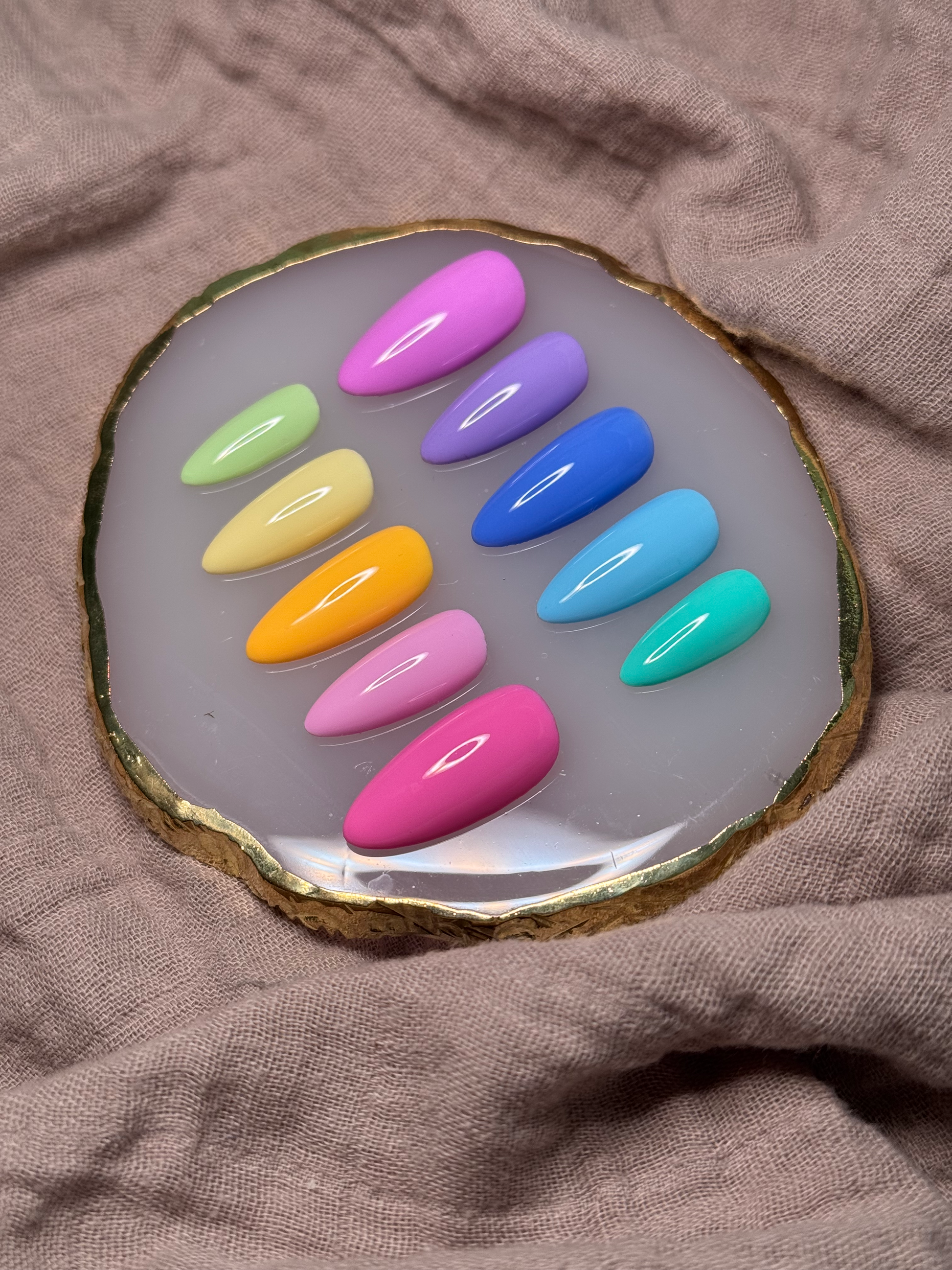 Turn up the heat with Summer Pop, a vibrant set of press-on nails in a spectrum of juicy, sun-soaked colors. From electric coral to sky blue, lemon yellow to tropical teal, each nail is finished with a sleek, high-gloss shine that screams summer fun. Perfect for vacations, beach days, festivals, or whenever you want your nails to steal the spotlight. These salon-quality, reusable press-ons are shaped in a flattering almond tip and designed for effortless, eye-catching wear.